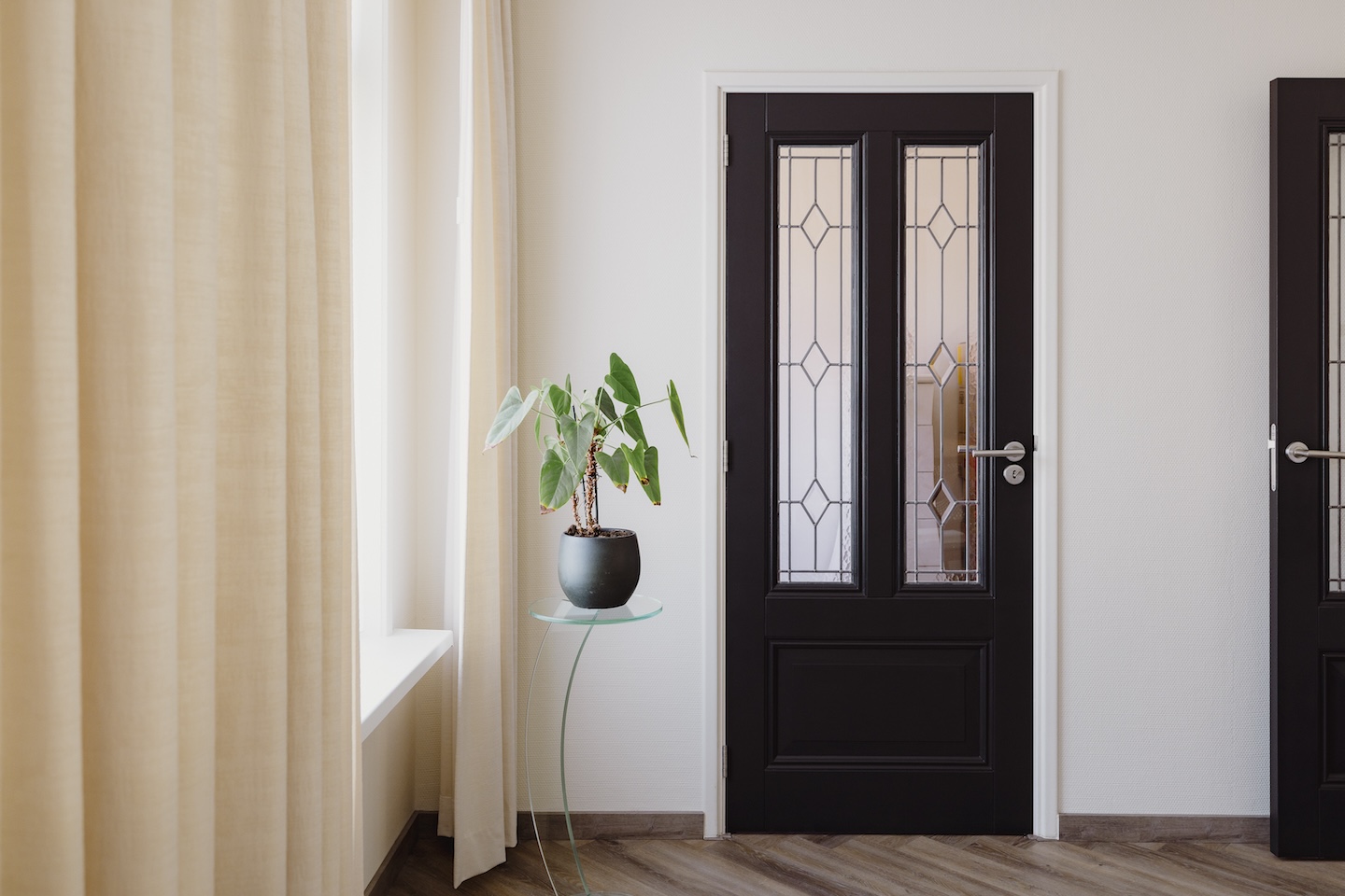 Les portes sont davantage mises en valeur par la couleur Cornwall Black qui, associée aux accents Gold, apporte une touche moderne et élégante à l’intérieur. Le mobilier existant a été soigneusement mis en place et complété par de nouveaux éléments qui s’accordent parfaitement avec les couleurs et le style choisis.